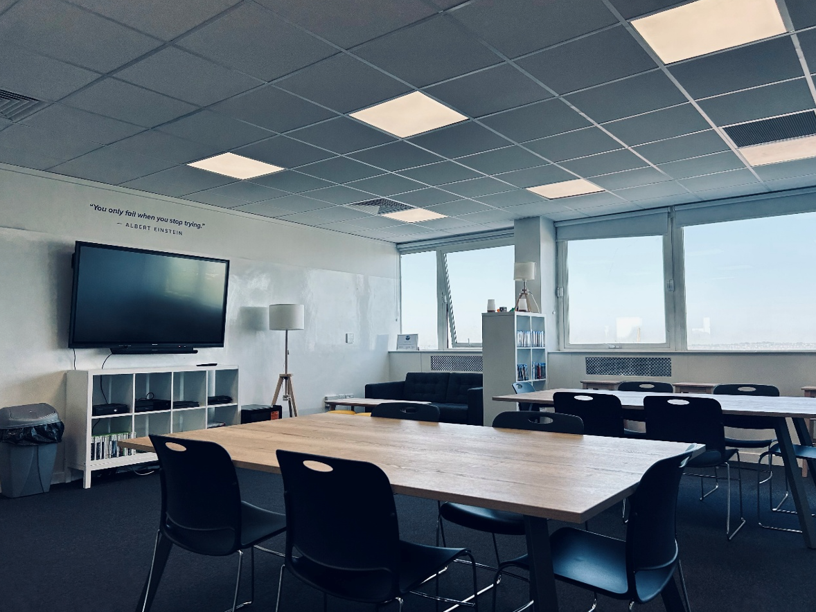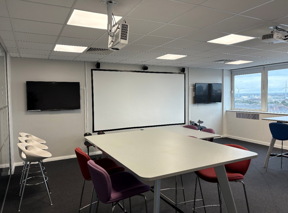 Discover Room (B404) equipped with a massive HD screen with dts surround sound, VR headsets, 3D projectors, Nintendo Wiis and space for workshops and classes.